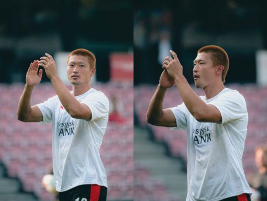 이날도 구단 SNS에는 조규성의 사진이 여럿 올라왔다. 노랗게 탈색한 '반삭 머리' 조규성이 훈련에 매진하는 모습이었다. 출전 명단이 적힌 사진에는 장발 시절 조규성이 희미하게 그려져 있었다.