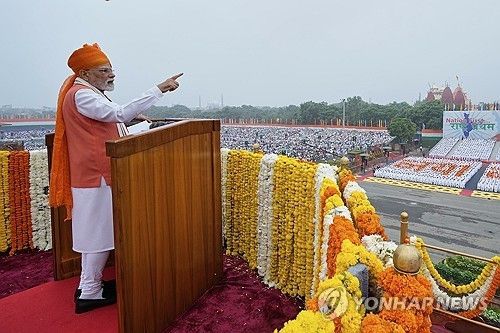 독립기념일 연설하는 모디 인도 총리. [AP 연합뉴스] |