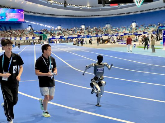 4개 레인에 정렬한 휴머노이드 로봇들이 출발 총성과 함께 일제히 트랙을 박차고 나섰다. 성인 키만 한 거대한 로봇부터 어린아이처럼 앙증맞은 소형 로봇까지 제각기 다른 체격의 선수들이 1500m 트랙을 향해 돌진했다.