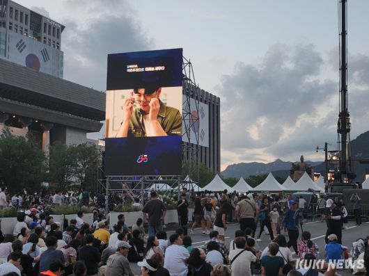 15일 오후 8시에 진행되는 이재명 대통령의 ‘국민임명식’을 관람하기 위해 많은 시민들이 광화문 광장으로 몰려들었다.