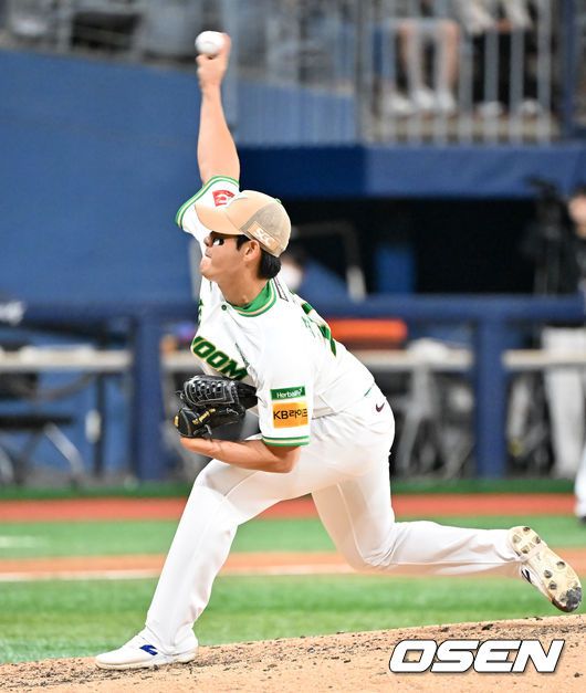 [OSEN=고척, 민경훈 기자] 15일 오후 서울 고척스카이돔에서 ‘2025 신한 SOL Bank KBO리그’ 키움 히어로즈와 KT 위즈의 경기가 열린다. 키움은 메르세데스, KT는 고영표를 선발로 내세운다. 9회초 마운드에 오른 KT 조영건이 힘차게 공을 뿌리고 있다. 2025.08.15 / rumi@osen.co.kr