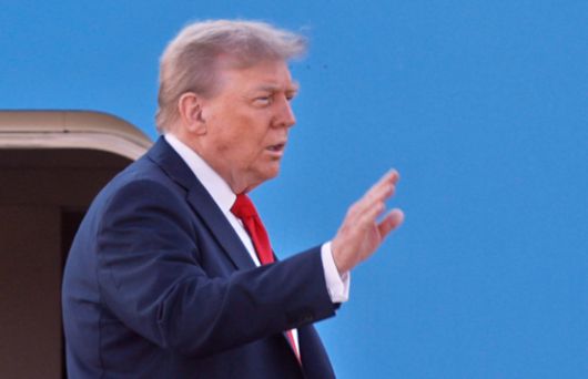현지시간 15일 도널드 트럼프 미국 대통령이 블라디미르 푸틴 러시아 대통령과 정상회담이 열리는 알래스카로 가기 위해 대통령 전용기에 탑승하고 있다. 〈사진=AP·연합뉴스〉 |