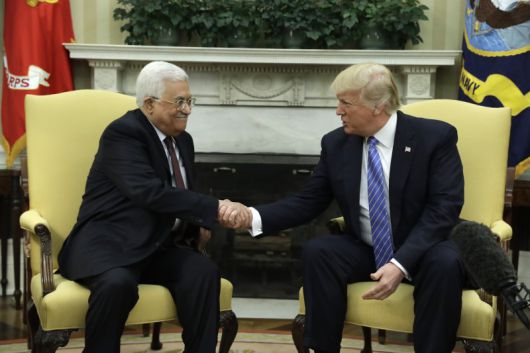 마무드 아바스 팔레스타인자치정부 수반(왼쪽)이 지난 2017년 5월 도널드 트럼프 미국 대통령과 백악관에서 회담하며 악수하고 있다. AP뉴시스 |
