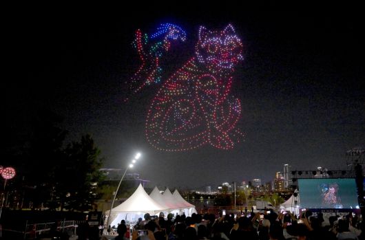 축제의 하이라이트인 대규모 드론쇼에서는 한강 밤하늘에 넷플릭스 애니메이션 ‘케이팝 데몬 헌터스(케데헌)’ 열풍 속 ‘더피’의 모티브가 된 ‘까치호랑이’를 비롯해 한반도 지도, 태극기 등을 차례로 구현하며 시민 주도의 통일 염원과 K-컬처의 위상을 압도적 스케일로 구현했다. 이번 드론쇼는 시민 자발적 후원금으로 제작된 상징적 퍼포먼스로, 문화의 힘으로 통일 비전을 공유한다는 축제의 취지를 선명히 드러냈다. 이후 가수 김다현, 손이지유, 뮤지컬 배우 김소현·손준호 부부의 축하 공연이 이어지고 대망의 광복 80주년 기념 불꽃쇼로 대축제의 피날레를 장식했다.
