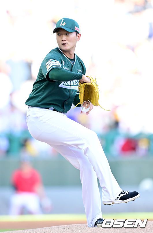 [OSEN=잠실, 최규한 기자] 16일 인천 SSG랜더스필드에서 ‘2025 신한 SOL Bank KBO리그’ SSG 랜더스와 LG 트윈스의 경기가 열렸다. 홈팀 SSG는 김건우, 방문팀 LG는 송승기를 선발로 내세웠다. 1회초 SSG 선발 김건우가 힘차게 공을 뿌리고 있다. 2025.08.16 / dreamer@osen.co.kr
