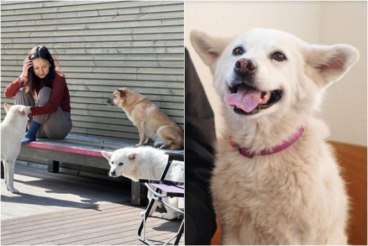 가수 이효리와 반려견들. |