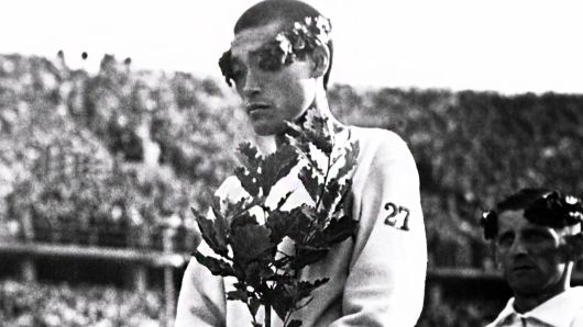 1936년 8월 9일, 마라토너 손기정 선수는 베를린 올림픽 경기장의 10만 관중 앞에서 가장 먼저 결승선을 끊습니다.