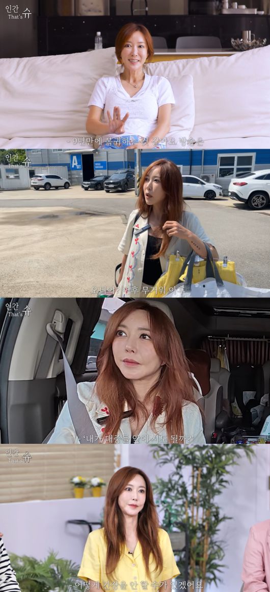 슈는 "9년 만에 방송에 복귀하는 거 같다. 진짜 시간 너무 빨리 간다"며 손수 메이크업 박스, 의상을 챙겨다니는 근황을 전했다.