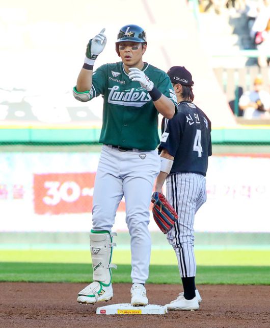 선두타자 신민재가 볼넷을 골라 나갔다. 후속타자 문성주가 헛스윙 삼진으로 물러났으나, 신민재가 신들린 슬라이딩으로 2루를 훔치는 데 성공했다.