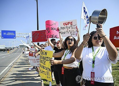 (워싱턴=연합뉴스) 박성민 특파원 = 캐나다 최대 항공사인 에어캐나다 승무원 노조가 16일(현지시간) 파업에 돌입하면서 하루 승객 약 13만명의 항공편에 차질이 빚어지고 있다.