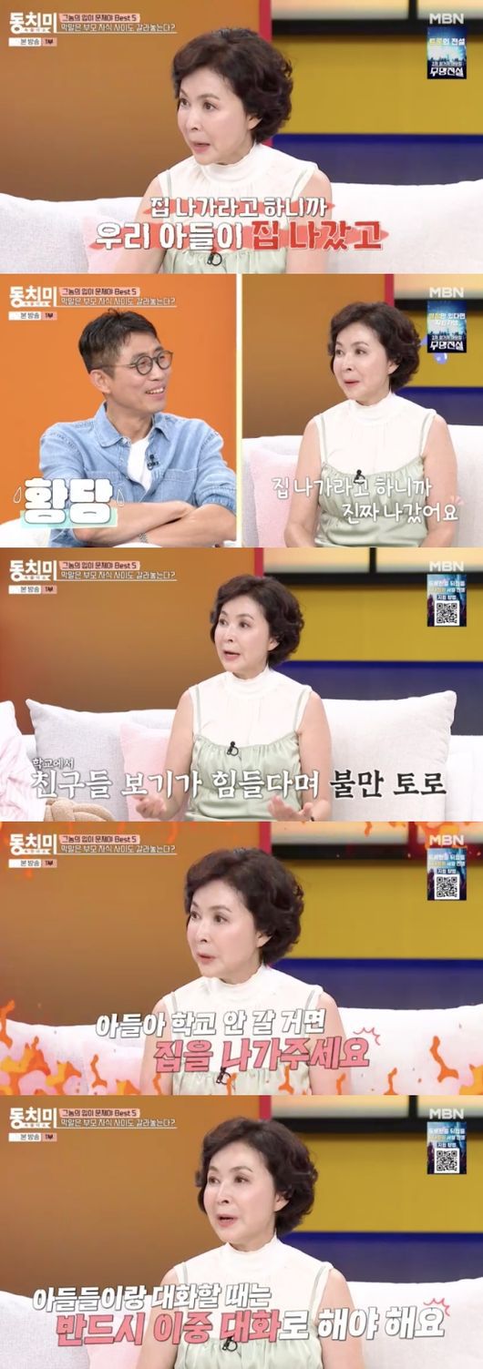 금보라는 요즘 부모들은 아이를 너무 귀하게 키운다고 지적했다. 그는 “(나는 아들을) 잡초처럼 잘 키웠다. 집 나가라고 하니까 우리 아들이 집 나갔다. 이혼했을 때 창피해서 학교를 못 가겠다더라. 친구들 보기가 힘들다고 안 가겠다더라. 4~5일을 안 가더라”라며 이혼했을 당시를 떠올렸다.