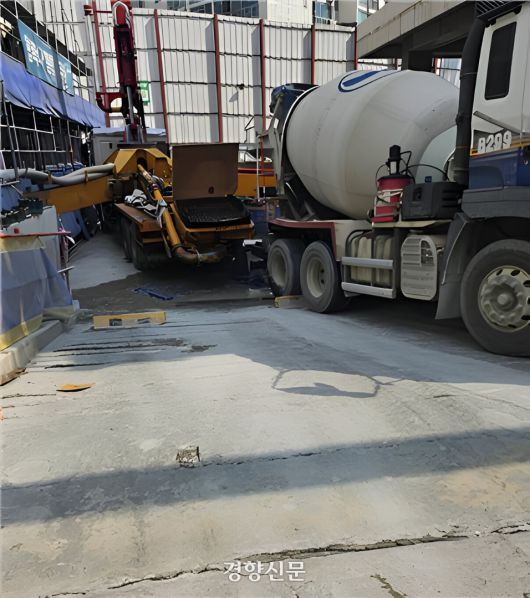 포스코이앤씨가 시공하는 서울 구로구 지식산업센터 건설 현장에서 레미콘 트럭이 뒤로 밀리는 산재 사고가 발생했다. 이 사고로 레미콘 트럭과 콘크리트 펌프카 사이에 끼인 이모씨는 왼쪽 다리를 절단했다. 이진호 리앤리파트너스 변호사 제공 |