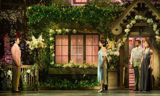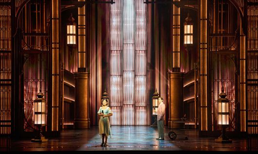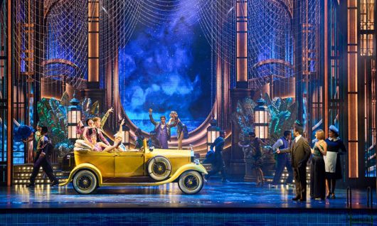무대와 시각 디자인은 유례없는 풍요가 시작됐던 화려한 재즈 시대를 훌륭하게 소환한다. 대표적 부촌인 롱아일랜드 저택 가의 호화로움과 대비하는 어둑한 접경지대의 주유소, 브루클린 브리지 하부를 연상시키는 거리 장면이 고해상도 LED배경과 다단 백월, 이동식 구성물로 겹겹이 구축된다. 여러 겹의 배경막과 트러스가 만들어내는 심도는 보기 드문 입체감을 만들어낸다. 톰·데이지 저택의 아름다운 정원, 화려한 개츠비의 침실과 소박한 닉의 집과 풍경 등 대극장 스케일의 파노라마를 실사 영화처럼 구현한다. 오케스트라 피트를 활용한 수영장 연출 역시 개츠비의 마지막을 극적으로 만들어낸다.