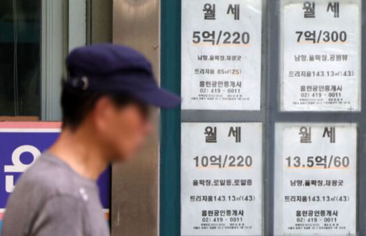 17일 서울 시내 한 부동산에 게시된 월세 매물 정보. 뉴시스 |