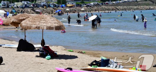 (포항=뉴스1) 최창호 기자 = 17일 오후 경북 포항시 전역에 폭염경보가 발령 중인 가운데 북구 흥해읍 용한리 해수욕장에서 피서객들이 더위를 식히고 있다. 2025.8.17/뉴스1choi119@news1.krCopyright ⓒ 뉴스1. All rights reserved. 무단 전재 및 재배포, AI학습 이용 금지.