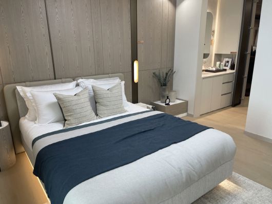 전 가구는 커튼월룩 외관과 고급 마감재가 적용되며 남향 위주의 동 배치와 넓은 동간 거리를 확보해 채광과 조망을 강조했다. 모든 타입에 드레스룸이 마련됐고 전용 59·84㎡에는 건식세면대가 포함된 부부욕실이 기본 제공된다. 75~84㎡에는 현관 팬트리, 복도 팬트리 등이 더해졌다.