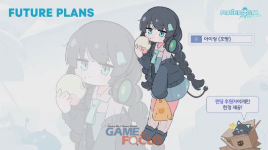 한편, 새로이 추가될 DB(캐릭터) 등 향후 계획에 대해서도 전해졌다. 향후 '소시아'와 '프레이즈' 등 2종의 DB가 추가될 예정이며, '아이링(호빵)'은 펀딩 후원자 대상으로만 제공된다. 또 펀딩 당시 4개만 판매된 커미션 상품을 통해 만들어진 DB(캐릭터) 4종이 추가될 예정이다. 더불어 DB와 함께 플레이를 진행할 수록 애정도가 높아져 새로운 모션, 코멘트 등을 볼 수 있는 애정도 시스템도 추가된다.