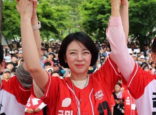 지난 5월21일 김문수 당시 국민의힘 대선 후보 선거운동 중인 배현진 국민의힘 의원. 배 의원 페이스북 갈무리 |