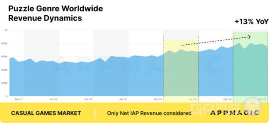 퍼즐은 수년간 최고 성과 장르로 남아있었고, H1 2025도 예외가 아니며 46억 달러의 수익으로 전년 대비 13% 성장을 기록했다.