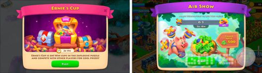 에어 쇼, 어니즈 컵, 에일리언 인베이젼 같은 이벤트들은 매치쓰리 레벨을 임시 게임플레이로 도입해 플레이어들에게 귀중한 게임 내 아이템을 보상하고 그들의 경험을 신선하게 한다. 이 크로스 장르 매치쓰리 기능은 종종 마일스톤, 수집, 또는 리더보드 같은 이벤트와 함께 동반되어 효과를 더욱 강화한다. 이러한 겹치는 이벤트들과의 시너지에서, 이들은 2025년에 최대 51%의 수익 급증에 기여했다.