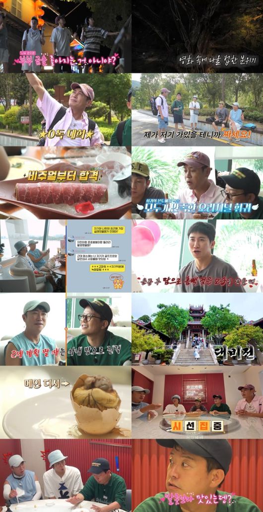 이후 새콤달콤한 탕수육부터 ‘겉바속촉’인 가지튀김 등을 폭풍 흡입했으며, 야경이 아름다운 ‘운수요 마을’을 거닐었다. 그러던 중, 1400년대에 심어졌다는 ‘부부 나무’를 영접했는데, 홍인규는 “이 나무 만지면 부부 금슬 좋아지는 거 아니야?”라며 갑자기 소원을 빌었다. ‘새신랑’ 김준호도 “지민이와 결혼했는데, 앞으로 행복하게 살게 해주세요”라고 기도해 훈훈함을 더했다.