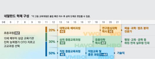 VWO는 원한다고 진학이 가능하지 않다. 초등학교를 졸업하는 12세 때 치르는 초등학력평가시험(CITO)에서 고득점한 학생만 VWO에 갈 수 있다. 12세 때 학문의 길을 갈 것인지, 아니면 실무·취업의 길을 갈 것인지가 결정되는 셈이다. VWO에 진학했지만 대학 진학을 미루는 데브리스 군처럼 학문의 길을 걷기로 한 이들조차도 실무 경험을 중시하는 경우가 많다. 특히 대학 진학에 있어서도 자신의 진로와 맞춰 선택이 이뤄진다. 점수에 맞춰 대학에 진학하는 일이 비일비재한 한국과는 다른 양상이다.