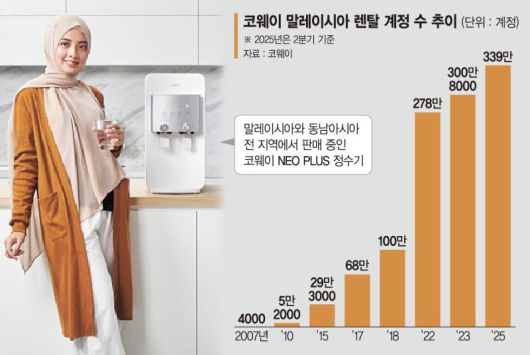 업계 관계자는 "동남아 역내에서 소득이 높은 편인 말레이시아에서도 아직 정수기를 비롯해 주요 가전 보급률이 30%가 채 안 되는 상황"이라면서 "동남아 전역에서 렌탈 시장의 성장세가 매년 두 자릿수가 예상되는 가운데 철저한 현지화에 나선다면 K팝, K푸드에 이어 K렌탈이 새로운 수출 모델로 자리잡을 것"이라고 내다봤다.