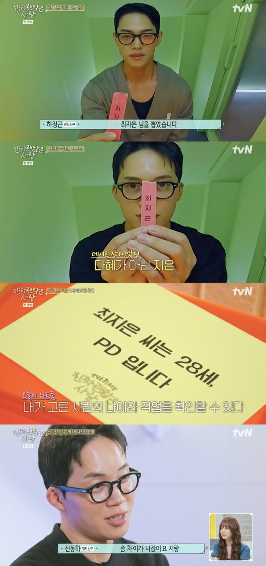 17일 방송된 tvN 예능 ‘진짜 괜찮은 사람’에서는 8명의 러벗들이 직접 매칭한 1:1 데이트가 이어진 가운데 하정근과 신동하가 최지은을 향한 마음을 드러냈다.