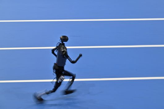 중국 첨단기술의 현주소를 뽐낸 로봇도 있었다. 지난 15일 1500m 육상대회에서 유니트리 자회사 링이과학기술팀의 로봇이 6분43초 만에 결승 테이프를 끊으며 우승을 차지했다. 2위 텐궁(6분55초), 3위 유니트리(7분10초)의 로봇 역시 달리는 내내 안정적으로 움직였다.