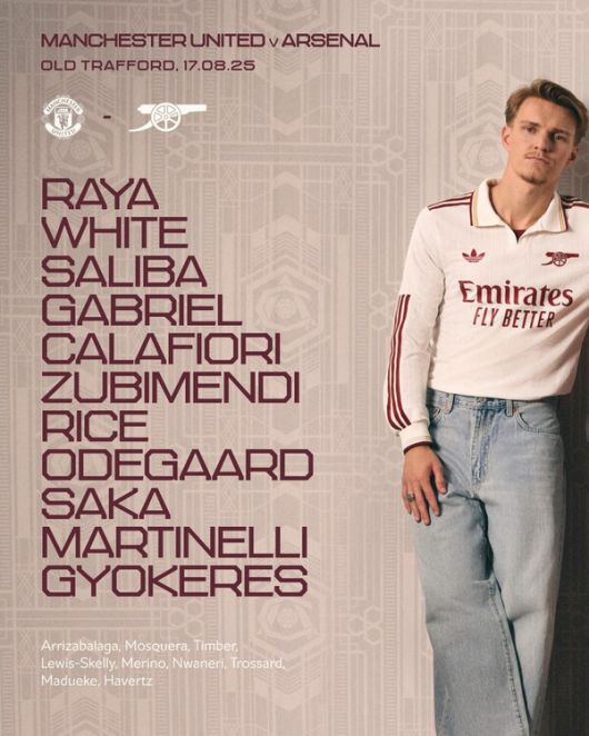 원정팀 아스널은 다비드 라야, 다비드 칼라피오리, 가브리엘 마갈량이스, 윌리엄 살리바, 벤 화이트, 마르틴 수비멘디, 데클란 라이스, 마르틴 외데고르, 가브리엘 마르티넬리, 빅토르 요케레스, 부카요 사카가 선발로 나선다.