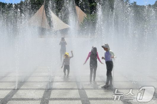 17일 오후 경북 포항시 북구 환호공원 바닥분수대에서 어린이들이 더위를 식히고 있다. 2025.8.17/뉴스1 ⓒ News1 최창호 기자 |