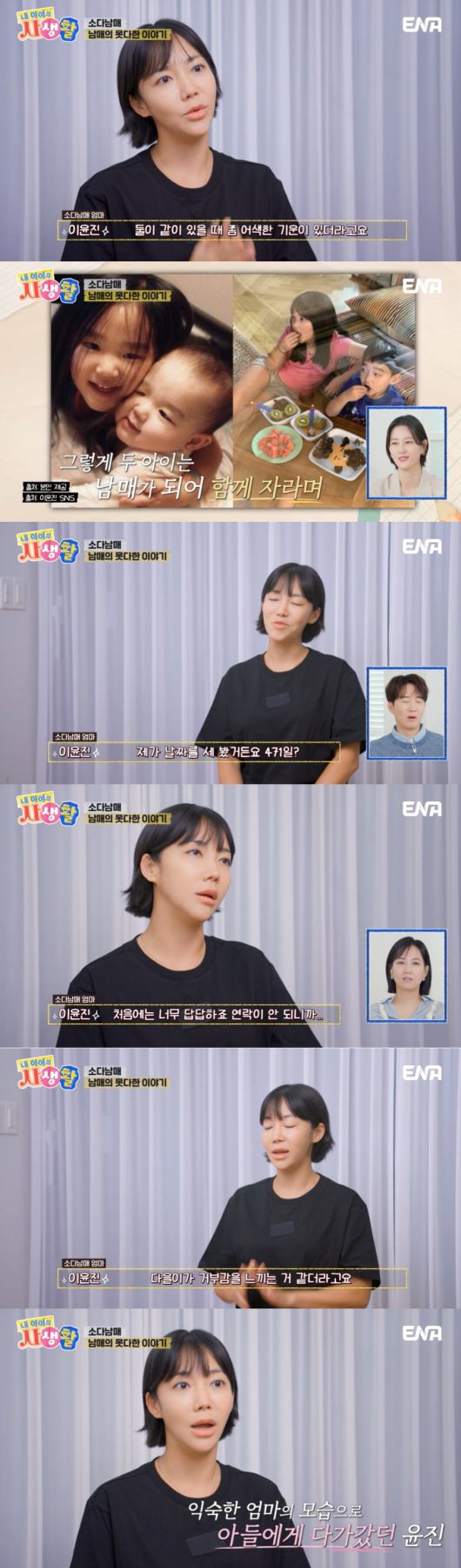 이윤진은 "소을이랑 다을이랑 떨어져있던 시간이 꽤 됐다. 같이 있을 때 아무래도 어색한 기운이 있더라"고 운을 뗐다.