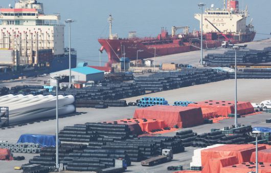 경기도 평택항에 철강 제품이 쌓여 있는 모습. 〈자료사진=연합뉴스〉 |