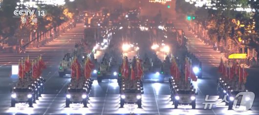 중국 당국은 지난 16일 오후부터 17일 오전까지 열병식 2차 종합 훈련을 진행했다. (CCTV 갈무리) |