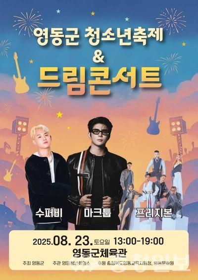 충북 영동군이 오는 23일 영동체육관에서 청소년들의 열정과 끼를 발산할 수 있는 '영동군 청소년축제 & 드림콘서트'를 개최한다.