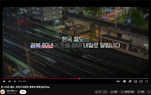 국토부는 지난 15일 광복절을 맞아 국토부 공식 유튜브에 ‘120년 철도, 국민이 되찾은 광복과 함께 달리다’라는 제목의 영상을 게재했다.