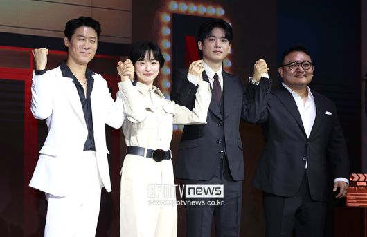 넷플릭스 시리즈 '애마' 제작발표회가 18일 오전 11시 서울 마포구 호텔나루 엠갤러리에서 열렸다. 이날 현장에는 이해영 감독, 방효린, 진선규, 조현철이 참석했다. 둘째 출산이 임박해 비대면 음성 참석을 예고했던 이하늬도 만삭의 모습으로 깜짝 등장해 작품에 대한 다양한 이야기를 전했다.