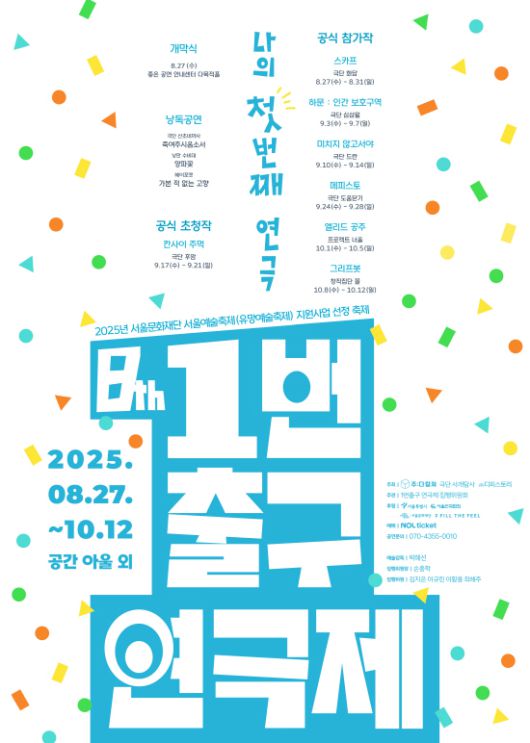 창작 공연의 새로운 얼굴과 이야기가 만나는 축제 '제8회 1번출구 연극제'는 제작사 주다컬쳐가 2017년부터 주최하고 운영, 올해로 8회를 맞이한 국내 유일의 대중성 지향 민간 연극제다. 2023~2025년 3년 연속 서울유망축제에 선정됐다.