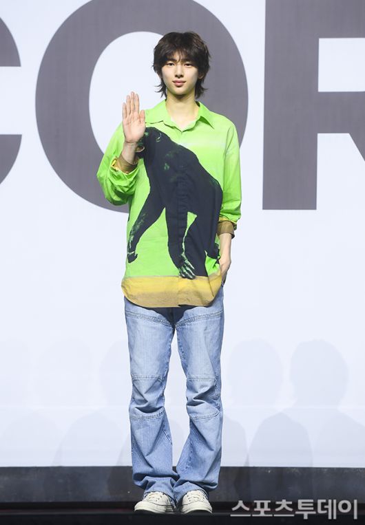 [스포츠투데이 팽현준 기자] 그룹 코르티스(CORTIS)의 주훈이 18일 서울 한남동 블루스퀘어 SOL트래블홀에서 열린 데뷔 앨범 '컬러 아웃사이드 더 라인(COLOR OUTSIDE THE LINES)' 쇼케이스에서 포토타임을 갖고 있다.