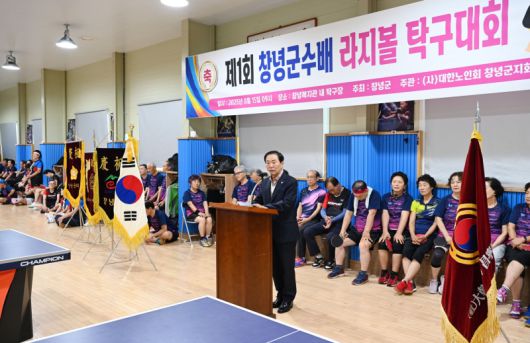 성낙인 군수는 “이번 대회를 통해 건강을 다지고 친목을 나누는 뜻깊은 자리가 되길 바란다”며 “앞으로도 노년층의 신체 단련과 사회적 교류 확대를 위해 라지볼 탁구 등 실버스포츠 활성화에 힘쓰겠다”고 말했다.
