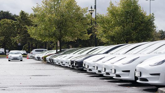 영국 맨체스터 외곽의 한 주차장에 테슬라 전기차 ‘모델3’가 줄지어 서 있다. AP=연합뉴스 |