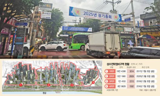 성수 1~4지구는 오세훈 시장의 이전 재임 기간인 2007년 정비구역 지정에 이어 2009년 한강변 개발 프로젝트인 ‘한강 르네상스’의 일환으로 전략정비구역으로 지정돼 최고 50층의 초고층 재개발 계획이 수립됐다. 그러나 박원순 전 시장 재임 기간 서울의 아파트 최고 층수를 35층으로 제한하는 정책으로 인허가가 지연되며 난항을 겪었다. 이후 2021년 서울시장 보궐선거에서 오 시장의 당선을 계기로 서울시의 정책이 다시 초고층 건축을 허용하는 방향으로 바뀌면서 사업 추진 동력을 얻었다. 이후 지난해 11월 서울시 도시계획위원회의 심의에서 최고 250m 높이 허용 등 정비계획 변경, 각 조합의 시공사 선정·서울시 통합 심의 준비 등으로 사업 추진에 속도가 붙으며 주목받고 있다.