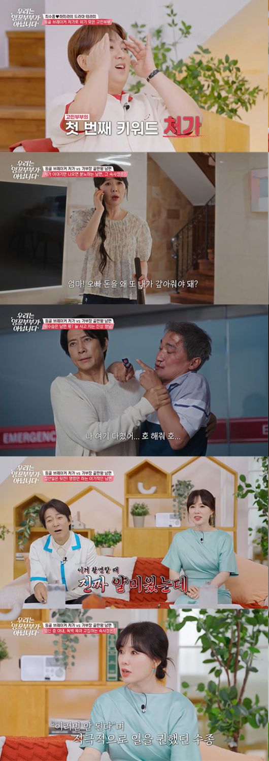 재연 드라마에는 아내가 임신하고 있지만, 사소한 것도 해주지 않으려 하는 남편 때문에 독박 육아와 살림을 맡게 된 아내의 모습이 비치고, 이는 함께 드라마 테라피를 보면서 하희라가 집에서 손 하나 까딱하지 않는 명령왕 연기를 하는 최수종을 보며 "(연기인 걸 알면서도)저 때 진짜 얄미웠는데"라고 말해 웃음을 부른다.