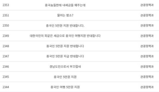 18일 경남도에 따르면 이달 14일부터 17일까지 도청 홈페이지 게시판에는 "왜 우리 세금으로 중국인들에게 숙박비를 지원하느냐", "중국인 관광객 5만원 해명 하세요" 등 중국인 관광객 숙박비 지원에 반대하는 내용의 글이 쇄도했다.