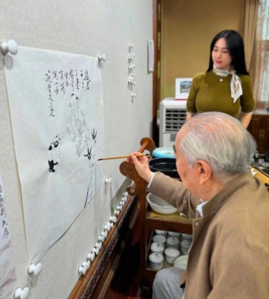 판쩡의 작품활동을 50세 연하인 그의 새 아내 쉬멍이 지켜보고 있다./출처: 판쩡 시문과 서화 웨이보 캡쳐 |