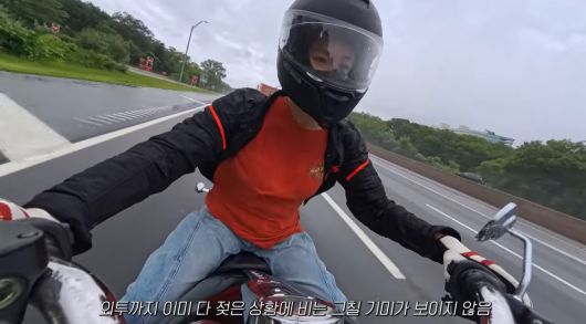 이후 이시영은 다시금 오토바이를 타게 됐다. 오토바이를 타고 투어를 하게 된 것. 먼저 호텔에서 다른 라이더들 합류 지점까지 45분 라이딩을 하게 된 이시영. 그러나 비가 쏟아졌고, 그는 "출반 전부터 걱정이 됐다. 고속도로 타니 더 내리기 시작한 비. 이미 옷은 다 젖었고 헬멧에도 계속 튀는 비. 멈춰야 하나 포기해야 하나 걱정을 많이 했다. 외투까지 이미 다 젖은 상황에 비는 그칠 기미가 보이지 않음. 헬멧에 자꾸 비가 튀어서 앞이 잘 안 보이는 상황"이라고 상황을 설명했다.