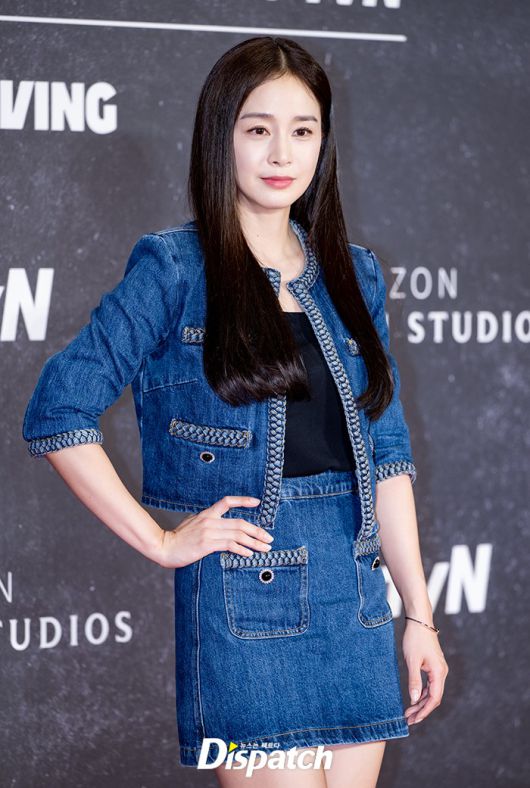 김태희는 청자켓과 청스커트로 청청패션을 보여줬다. 아름다운 미모가 돋보였다.