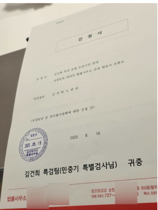 '김건희 특검 요청 순천시민연대'가 김건희 특검에 전격적으로 진정서를 제출했다.