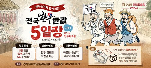 농협(회장 강호동)경제지주(축산경제대표이사 안병우)가 운영하는 축산물 전문 온라인쇼핑몰 농협라이블리가 한우자조금관리위원회와 공동으로 8월 18일~22일까지 '전국 한우 반값 5일장'을 개최한다고 밝혔다.