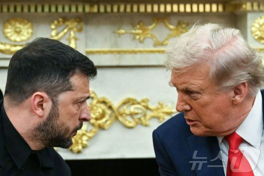 도널드 트럼프 미국 대통령과 볼로디미르 젤렌스키 우크라이나 대통령이 18일(현지시간) 워싱턴DC 백악관 오벌오피스에서 러시아-우크라이나 전쟁 종식안 논의를 위한 회담 전 기자들의 질문에 답하며 대화하고 있다. 2025.08.18. ⓒ AFP=뉴스1 ⓒ News1 류정민 특파원 |